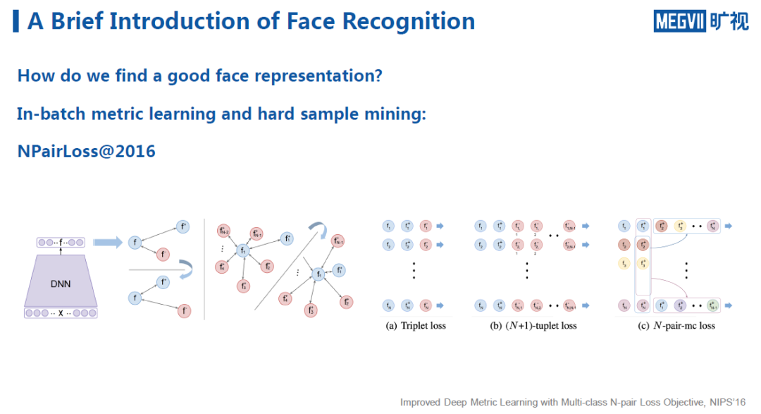 一个典型的例子是2016年的NPairLoss,其核心思想在于,无论是pairwise loss还是triplet loss,在训练时都是将数据堆叠成mini batch放到神经网络中,那么这时会发现,如果要做N个triplet loss,则需要让神经网络在一个batch中对3N张图像抽取特征,进而只产生N个三元组loss,这样的数据利用效率很低。