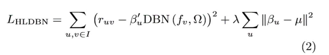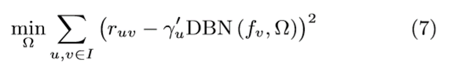 其中γu是预先从MF获得的。评级ruv预计为γu'xv,其中xv=DBN(fv,Ω)。
