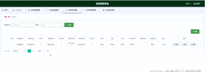 医生可以查看并处理科室预约相关信息。界面如下图所示: