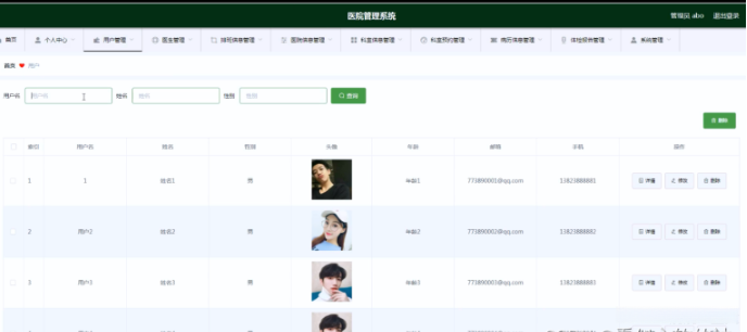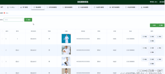 系统管理员具备录入医生信息、更新数据、删除记录以及查看详细信息的操作权限。具体操作界面见图5.2