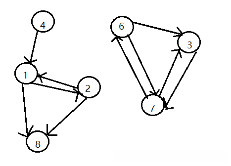 解析:Connected Components算法可以找出孤立的点。从结果可知,图分为两部分。1,4,8,2一组。6,3,7一组。