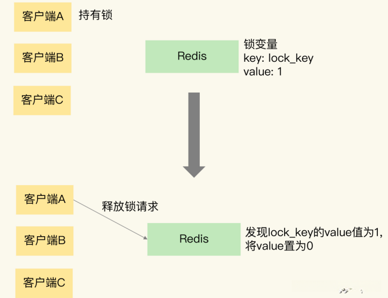 分布式锁:分布式锁也可以通过一个变量来实现。在加锁过程中需要判断锁变量的值,在释放操作中将锁变量设置为0以表明客户端不再持有该资源。