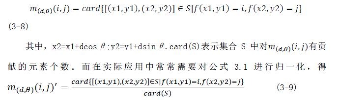 如图3.1所示,其中 和 的范围有像素间距d和方向θ两个参数决定,设f(x,y)表示一副灰度图像,对图像中任一区域R,定义S为区域中具有特定空间联系的像素对的集合,则灰度共生矩阵的元素表示为[22]: