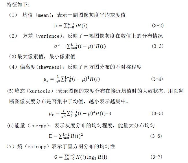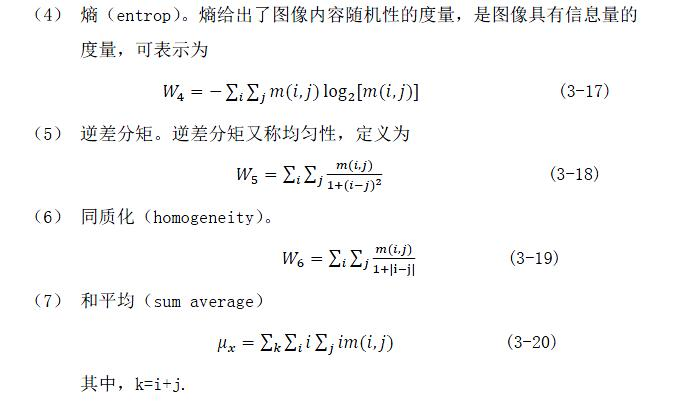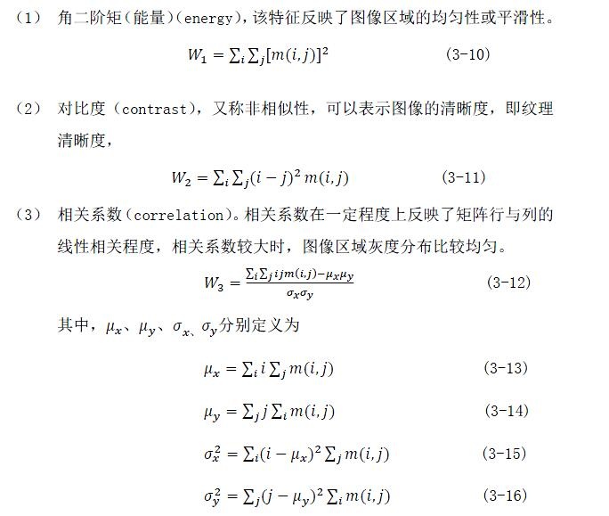 由灰度共生矩阵提取的几个主要的图像纹理特征定义如下: