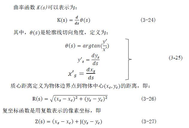从这些边界点可以导出3种形状表达:曲率函数(curvature function)、质心距离(centroid distance)、复坐标函数(complex coordinates function).