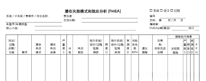 FMEA是一种从下往上进行的系统性分析方法,在系统失效(failure)发生时被用来发现导致失效的原因(Fault),并评估其影响(Effect)