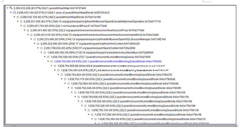 SPARK在短时间内生成了大量的SQL,并且这些SQL中包含了大量的联合和连接操作,在执行过程中将导致大量事件对象被创建,并将使得这里的事件数量激增到10000个以上。