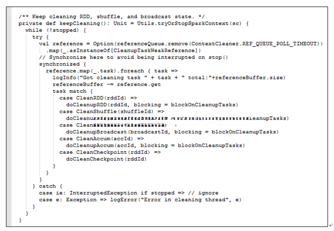 说到此处,Cleaner的设计方案可以说是spark中最糟糕的一个设计。 spark中的ContextCleaner主要用于回收与清理已经完成的 Broadcast 对象及 shuffle 数据。然而,在高并发场景下,我们发现这个问题会导致大量数据堆积,最终将导致 driver 内存耗尽而崩溃