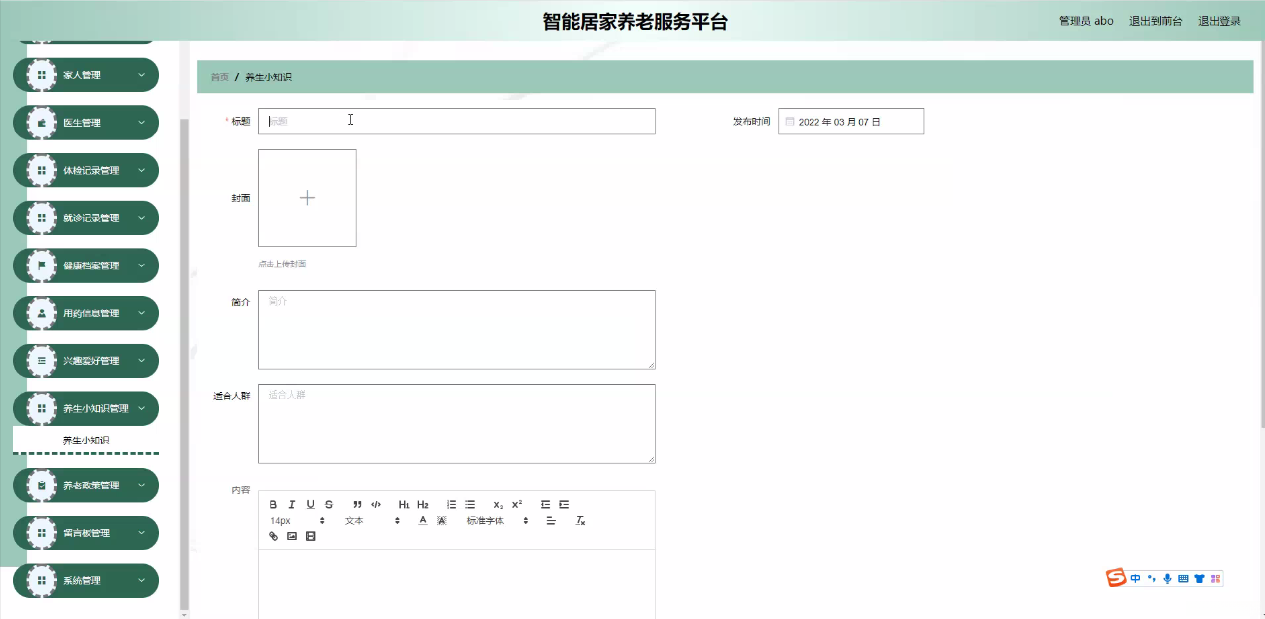 java计算机毕业设计(附源码)智能居家养老服务平台(ssm+mysql+maven+论文)