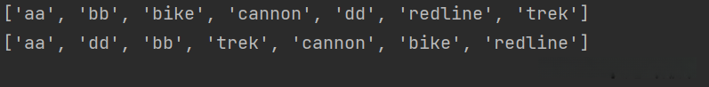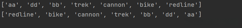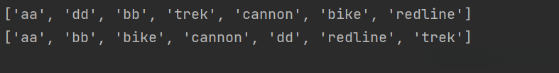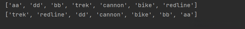 bicycles = ['aa','dd','bb','trek','cannon','bike','redline']