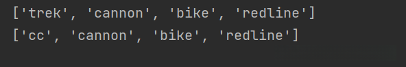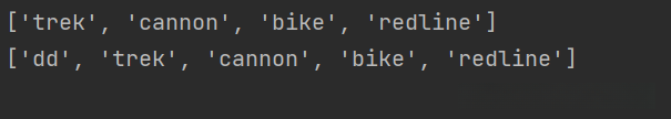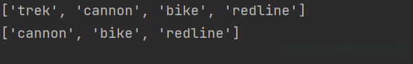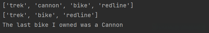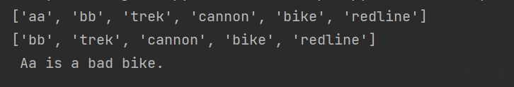 bicycles = ['aa','bb','trek','cannon','bike','redline']
