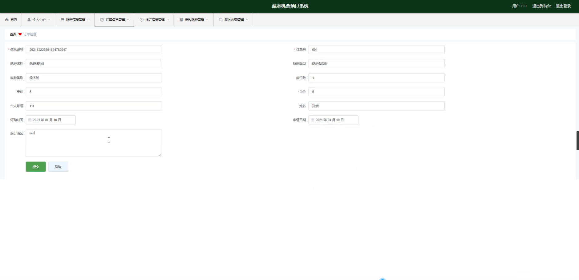 - 实现订单信息、退订信息和更改航班的快速处理;