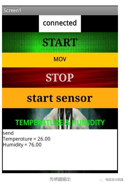 我们可以在图中看到按下启动传感器按钮时将显示值的温度和湿度。