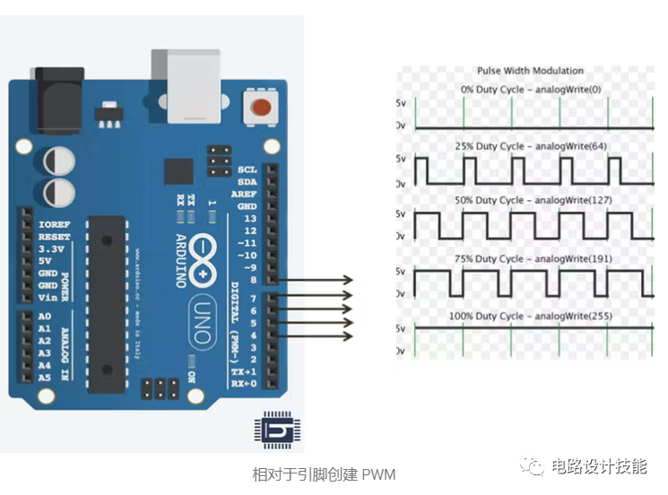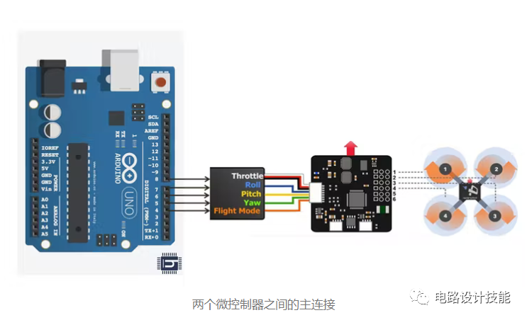 这些微控制器需要一个 PWM 信号作为输入来控制各个 BLDC 电机。这些信号将由 arduino uno 生成。