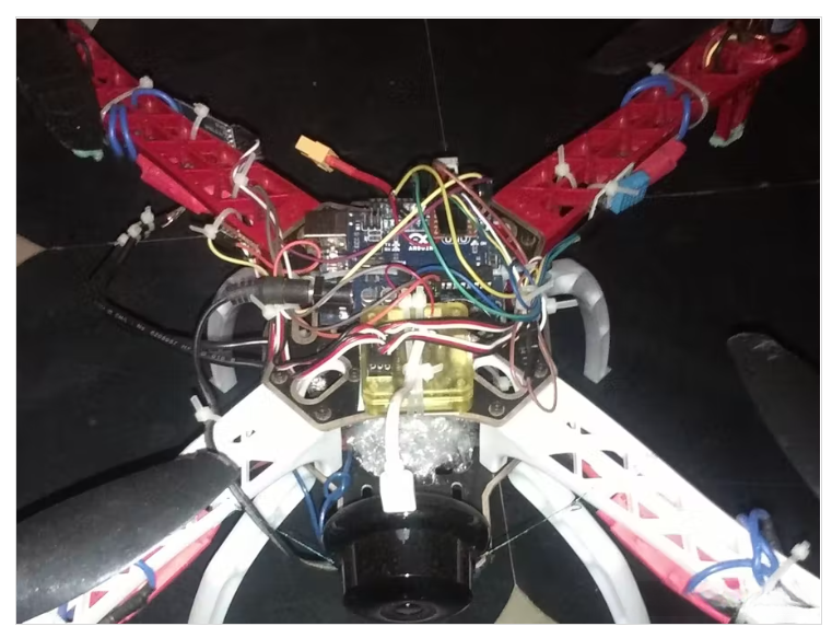 带有多个传感器和一个由两个微控制器控制的无线摄像头的 Arduino Uno 自动驾驶无人机。