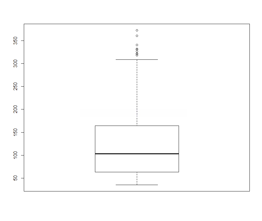盒须图也被称作箱线图,在数据分析中主要用来反映数据分布的基本情况。其中中间50%的数据集中在盒内部分,在这种情况下如果盒子长度越大,则表明数据分布越分散。此外这些延伸出去的线条则主要用于标记那些远离常规的数据点(即离群值)以及极端情况下的异常数值(极端值)。通常当处于1.5至3倍四分位间距(IQR)范围内的观测点被视为普通波动而超出此范围的数据则被认为是可能存在的特殊现象或异常数值