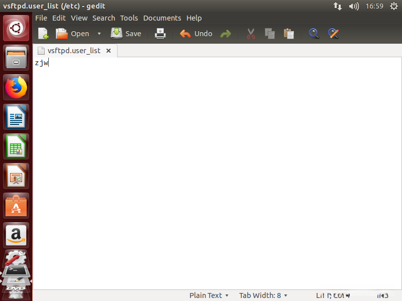 添加自己的用户,比如我的电脑用户是zjw,则在文件内写上zjw