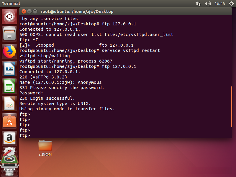 创建的ftpuser账户,用于接下来的实验,并修改密码