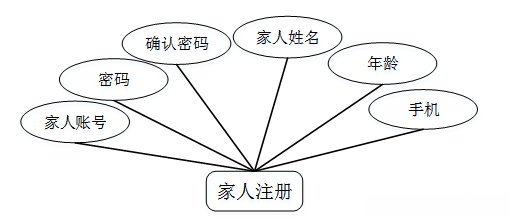 家人注册信息实体包括家人账号,密码,确认密码,家人姓名,年龄,手机等属性。家人注册信息实体图如图4-2所示: