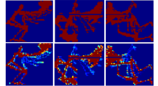 在运动区域空间体积中设定一个空间值来代表被编码的空间信息;即:注意到很难分辨两个运动区域相似但时间顺序相反的动作(如"站立"与"坐下"),因此我们采取措施使