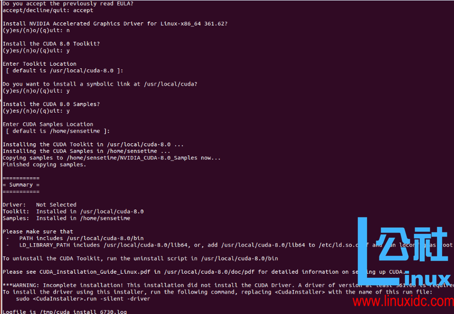 访问cuda_8.0.61_375.26_linux.run文件所在目录,并按照以下步骤完成安装操作