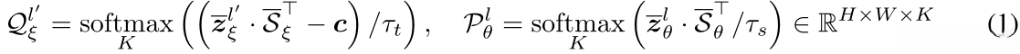 其中 B 代表批量大小。直观地说,减少 mean logit 会放大 不同像素之间 分配的差异,从而避免 将所有像素 分配给同一个原型 。除此之外,教师温度 τt 设置为 小于学生温度 τs 以产生更清晰的目标 并避免统一的分配 。这两种操作都有助于避免崩溃 ,并强制网络学习有意义的语义分组 。