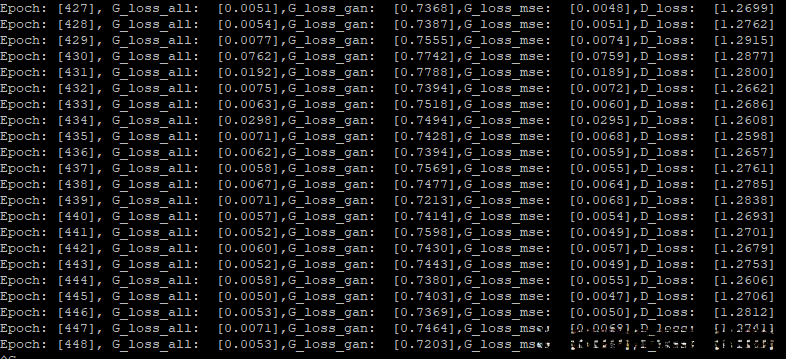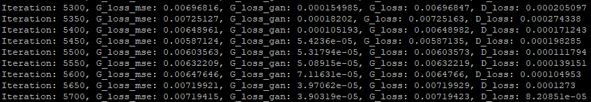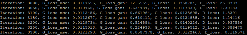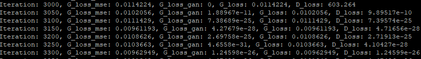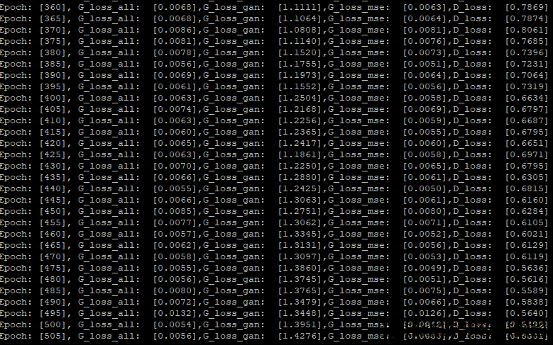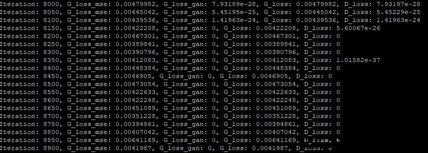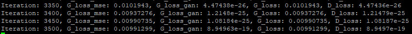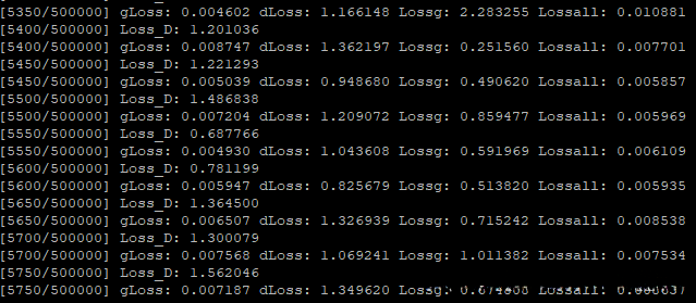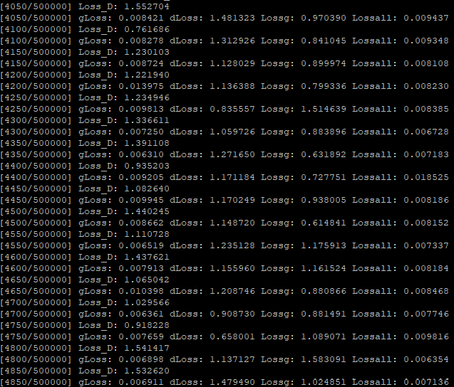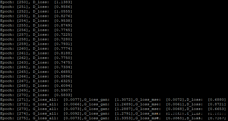 修正了錯誤后但鉴別器仍未發揮作用。按照理應的情况来说,鉴別器應與生成器互相挑戰,即優化G_loss_all時,D_loss應會伴随著改變。然而,在目前的研究中,對抗損失并未受到影響,這表明兩個模型並未產生成反效果。