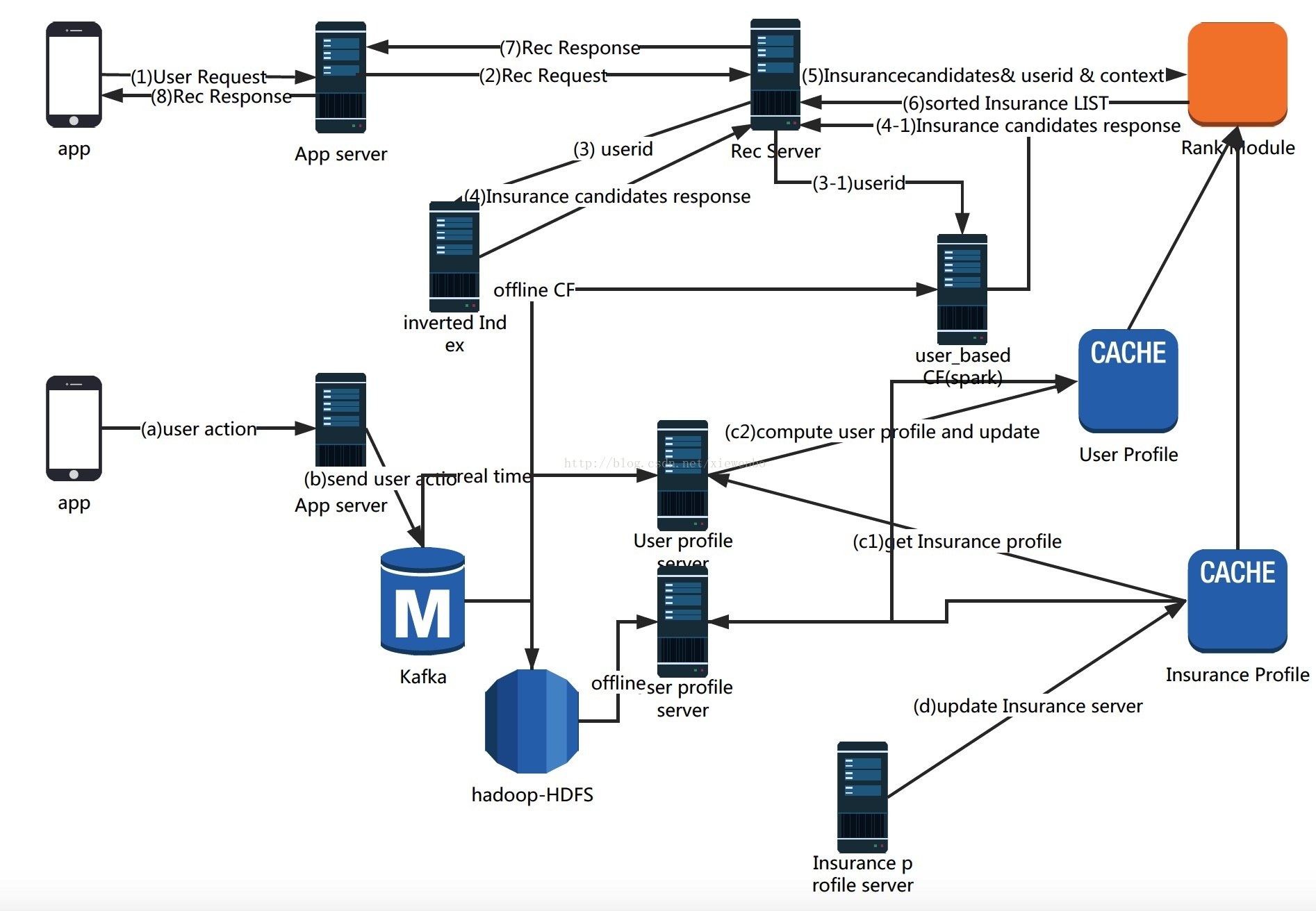 现在比较流行的推荐系统,往往是多种策略的融合,以及模块的组合,因为很少有哪一种算法可以覆盖所有的使用场景,或者是召回所有的物品,因此,一个推荐系统的其核心模块一般分为下面几步: