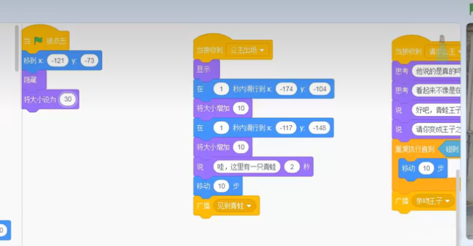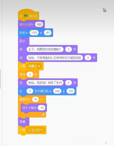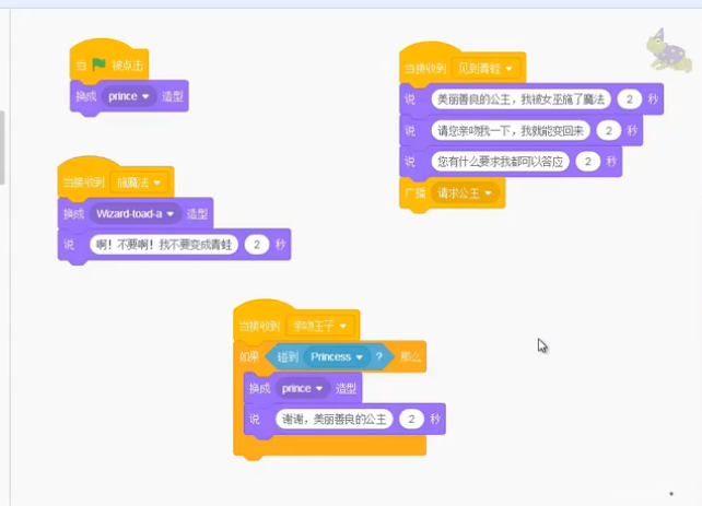 需求描述:女巫将王子变成了青蛙,并随后离开。 王子孤独地待在原地。 接着来了一个公主,并与这位孤寂的王子开始了对话。 公主轻轻亲吻着青蛙,并让其转身后重新成为了一位全新的 Prince。
