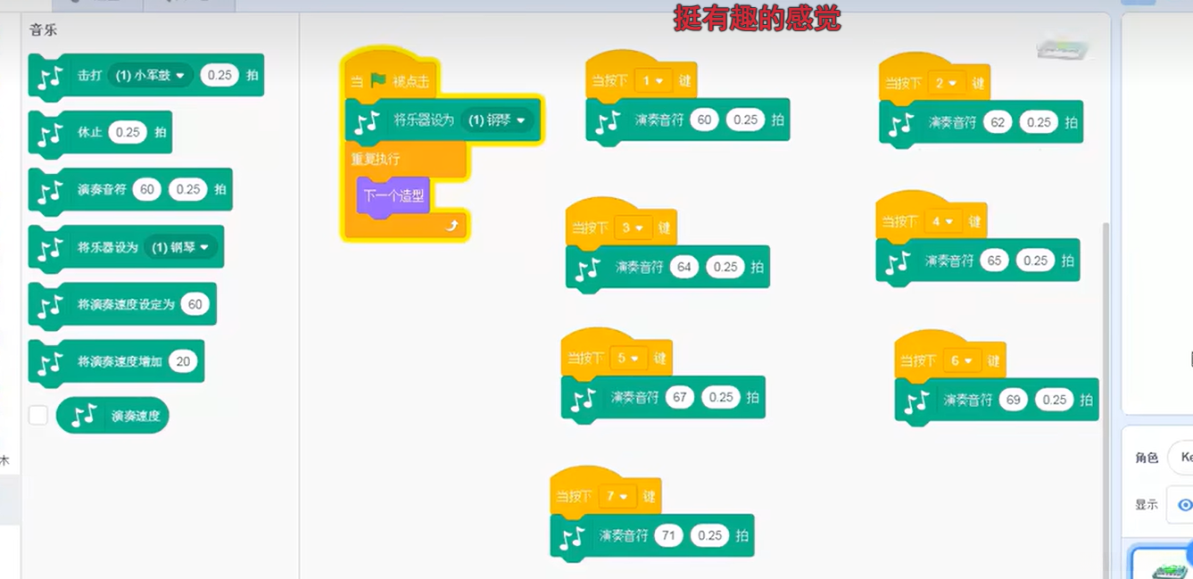 需求描述:点击开始后,点击键盘的123456键,电子琴发出声音