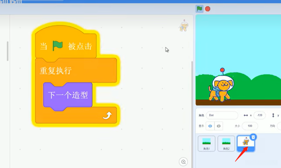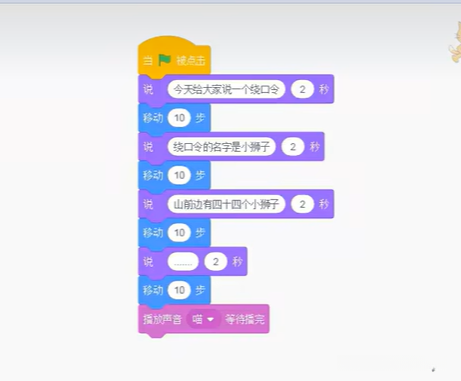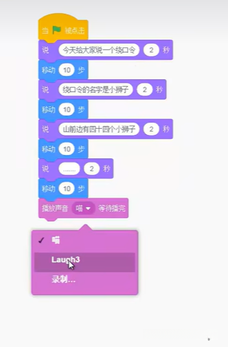 这样就实现了小猫边走边说绕口令,最后播放 一句声音的样子