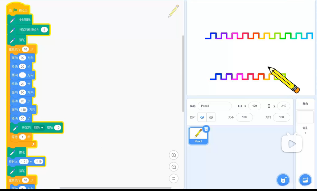 使用扩展积木绘制线条或图案,并根据用户的提示完成绘画任务。