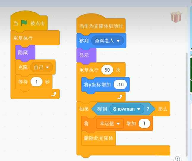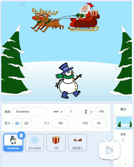 需求描述:圣诞老人角色从空中投掷出各色礼物, 玩家通过操控雪人接收并收集这些礼物. 每次准确地接到一个礼物时, 玩家会获得一次幸运值提升.