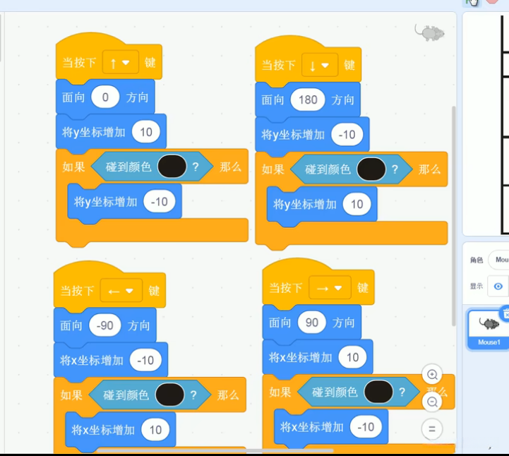 需求描述:用键盘的上下左右键控制老鼠闯迷宫
