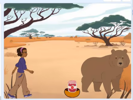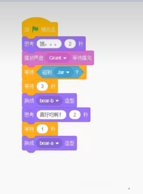 人喂狗熊,按下空格键,出现一瓶蜂蜜,狗熊站起来,吃完蜂蜜后,狗熊又趴下