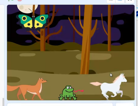 狐狸设有对话框,请问你想要参与哪种运动吗?当输入1时,独角兽将会奔跑;当选择2时,则是青蛙将会跳跃;而选择3,则会让蝴蝶将会飞翔。