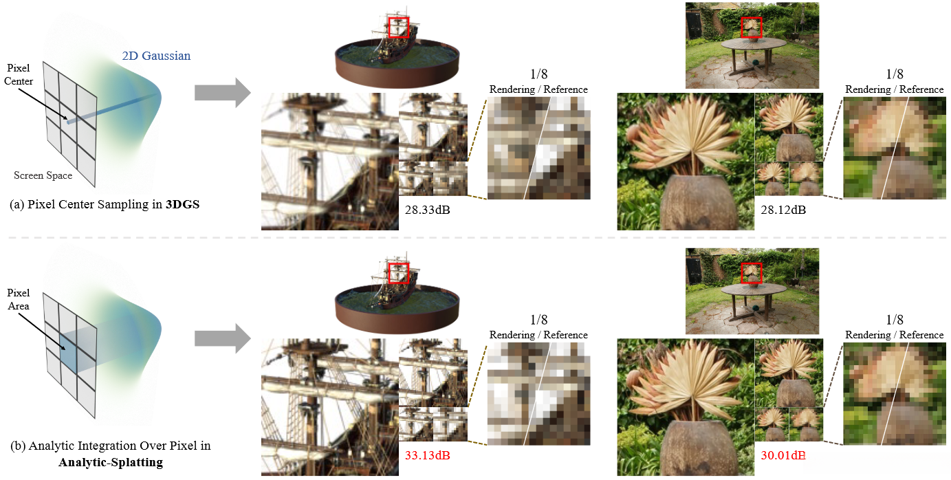 For shading a pixel by a Gaussian signal, 3DGS only treats the Gaussian signal value corresponding to the pixel center as the intensity response.