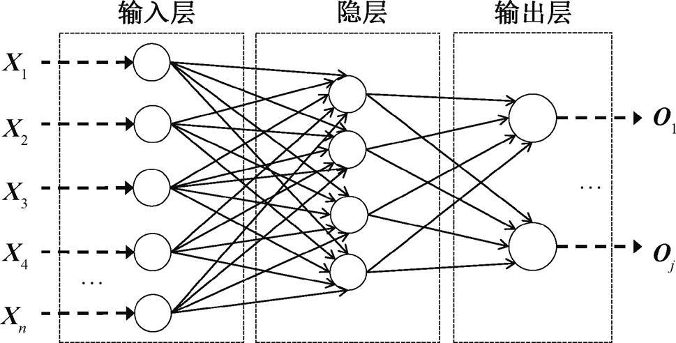 BP网络是在前馈神经网络的基础上发展起来的,始终有一个输入层(它包含的节点对应于每个输入变量)和一个输出层(它包含的节点对应于每个输出值),以及至少有一个具有任意节点数的隐含层(又称中间层)。在 BP-ANN中,相邻层的节点通过一个任意初始权值全部相连,但同一层内各节点间互不相连。对于 BP-ANN,隐含层和输出层节点的基函数必须是连续的、单调递增的,当输入趋于正或负无穷大时,它应该接近于某一固定值,也就是说,基函数为“S”型(Kosko,1992)。BP-ANN 的训练是一个监督学习过程,涉及两个数据集,即训练数据集和监督数据集。