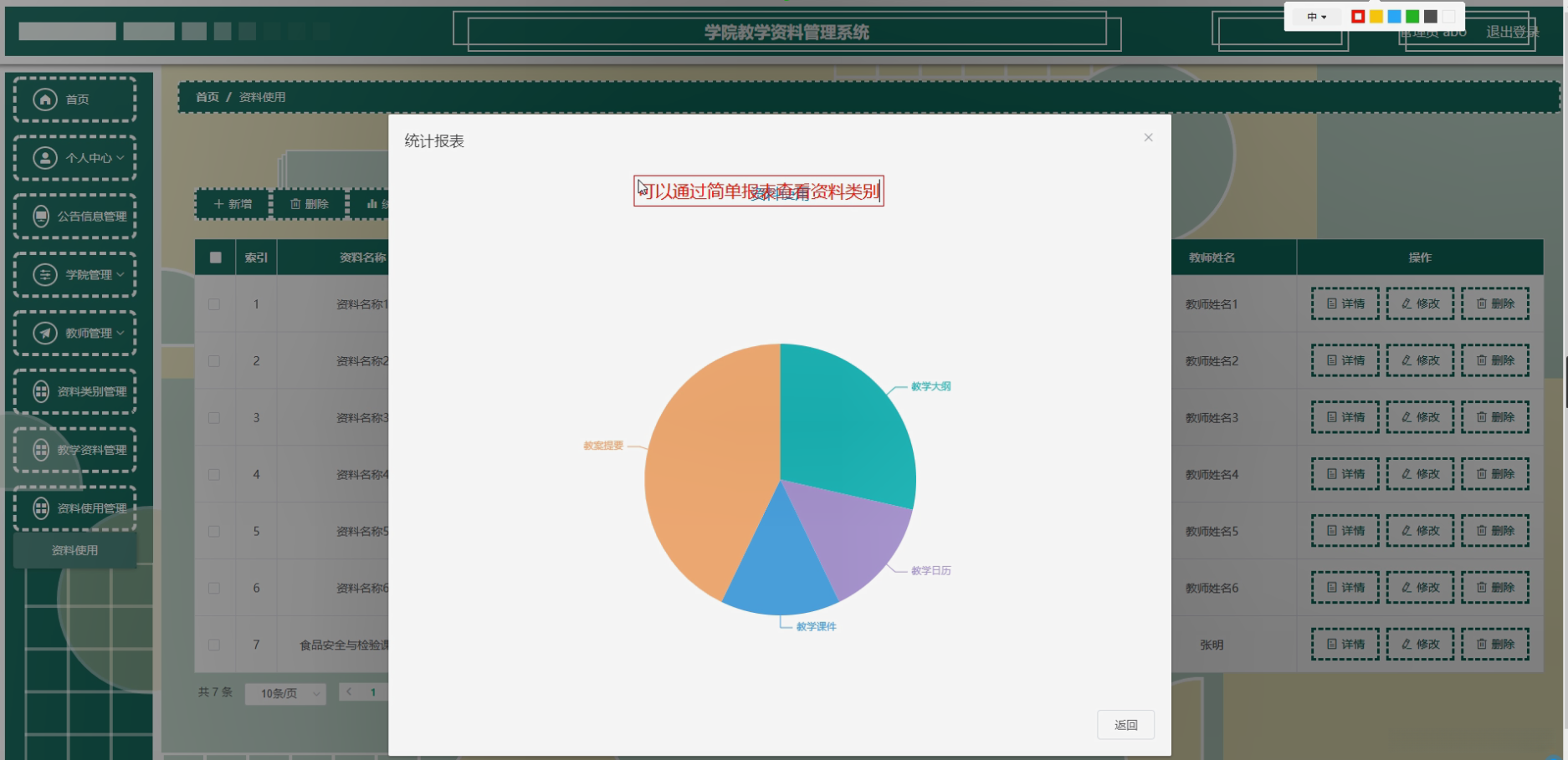 本研究旨在构建一个涵盖全面、易于使用的学院教学资料管理系统。该系统将实现以下目标:提供丰富的教学资源,并通过提升教学效率优化用户体验。