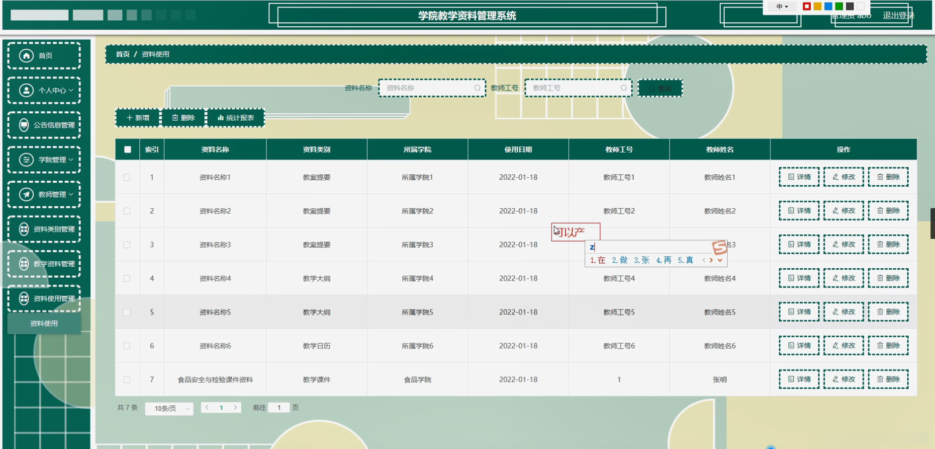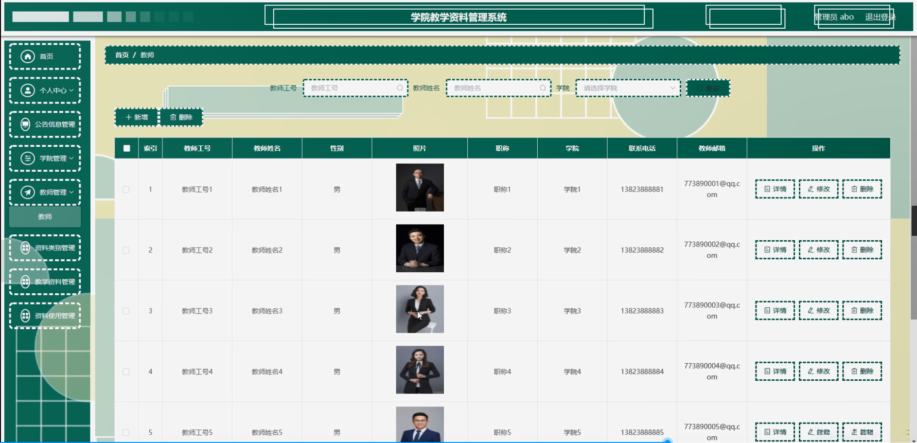 - 系统功能设计:对学院、教师等系统的各类资料进行系统性功能规划。