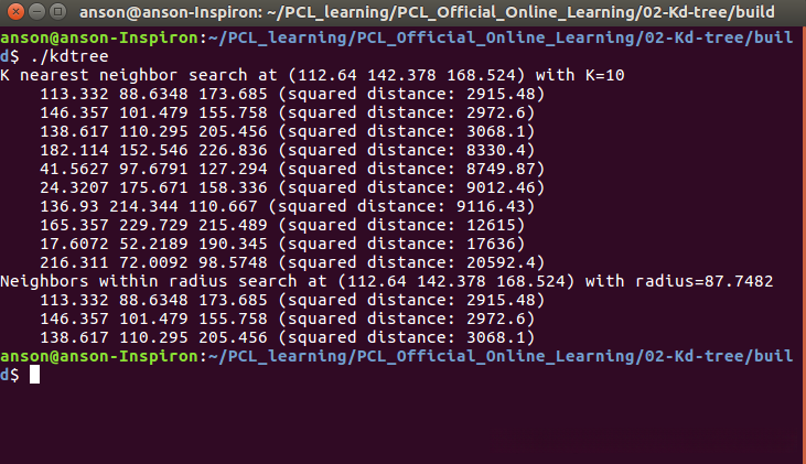KdTree-1 PCL学习记录-8 KdTree原理及使用kdTree进行范围搜索和最近邻域搜索方法