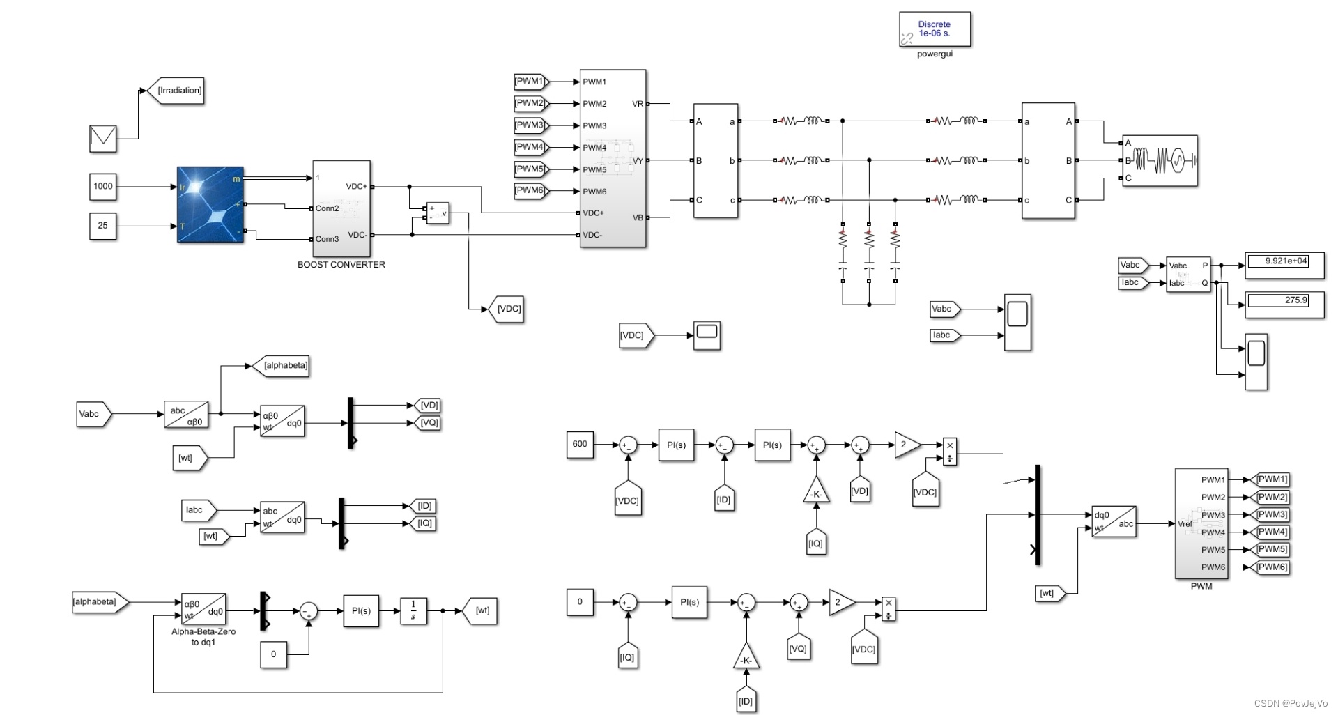 光伏PV三相并网逆变器MATLAB仿真 光伏+MPPT控制(boost+三相桥式逆变)