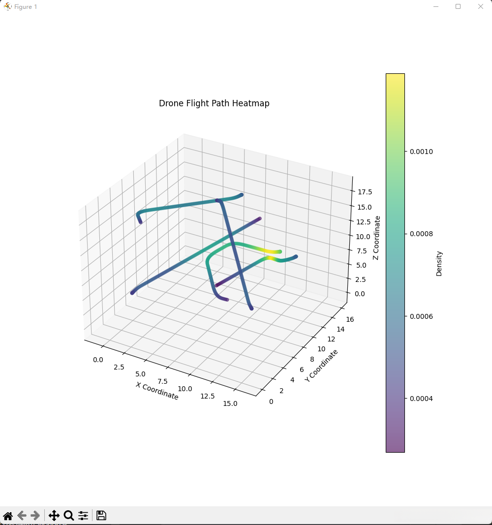 数据可视化:利用热力图、柱状图以及饼图清晰呈现无人机运行轨迹、冲突频率及运行轨迹长度的分布情况。