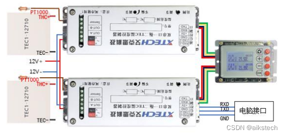 2 一拖二结构,一个调试器控制两个控温模块单元;