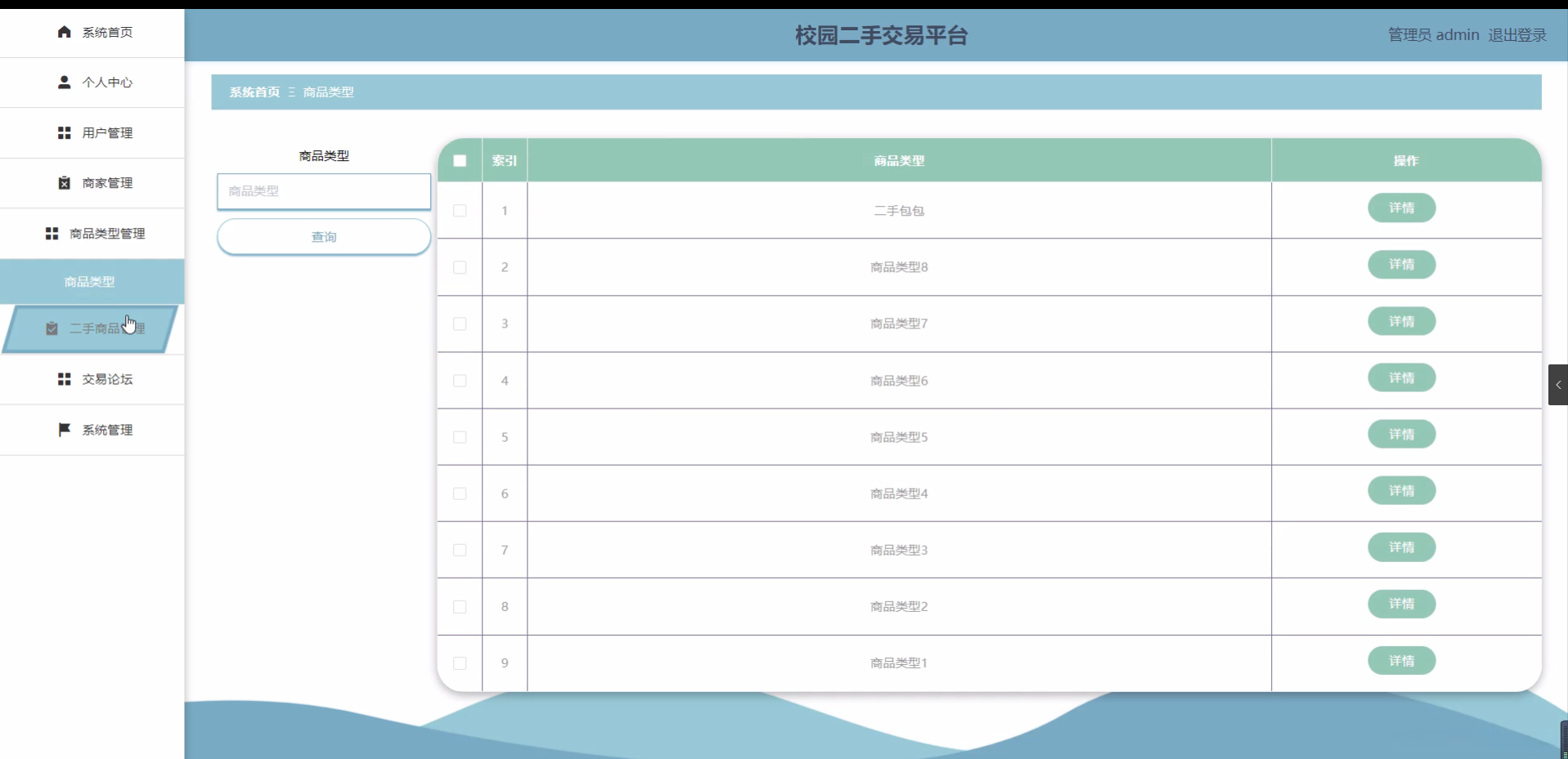 研究内容: 本研究的内容主要包括以下几个方面:1)根据系统功能需求,确定用户、商家、二手商品和商品类型等功能模块;2)设计平台的界面和交互方式,使用户能够方便地浏览、搜索、发布和管理商品信息;3)实现平台的数据管理和交易功能,包括用户注册登录、商品发布、交易评价等操作;4)设计平台的安全机制,保护用户的个人信息和交易安全;5)测试平台的性能和效果,评估其稳定性和用户体验。