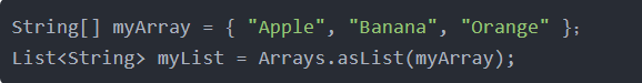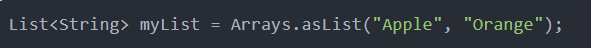 List<String> myList = Arrays.asList("Apple", "Orange");