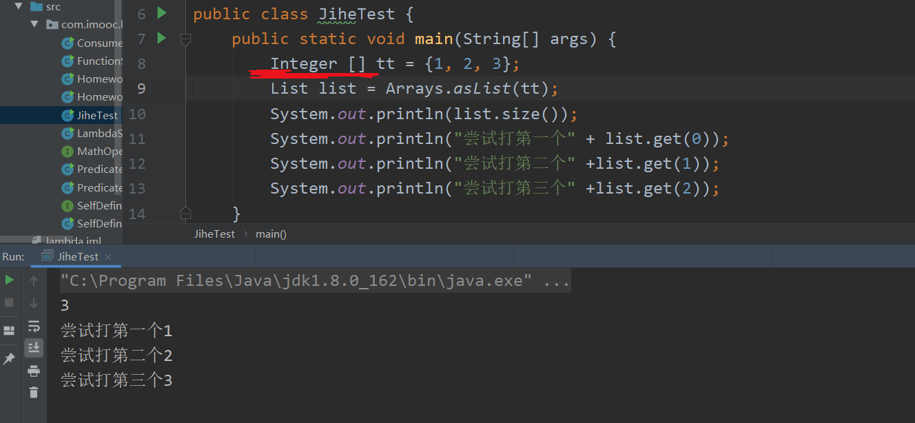 (2) Arrays.asList()的参数是可变参数;可变参数的本质就是一个数组;Arrays.asList()的参数可以传入一个数组如: