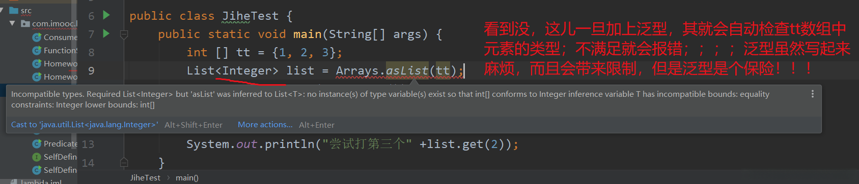 解决办法2:List定义的时候,加上泛型,强制检查类型