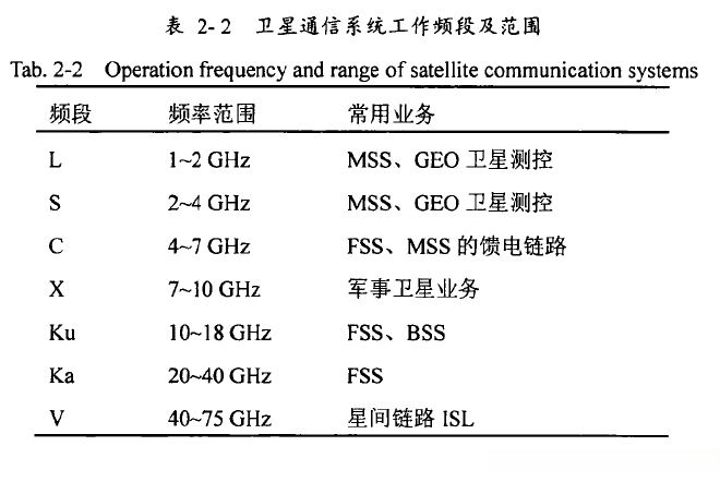 C(4-8GHz,固定卫星业务)、X(8-12)、Ku(12-18)、K(18-27)、Ka(27-40)。Ku趋于饱和,新一代宽带卫星使用Ka频段。