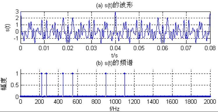 axis([0,Tp/8,min(st),max(st)]);title('(a) s(t)的波形')